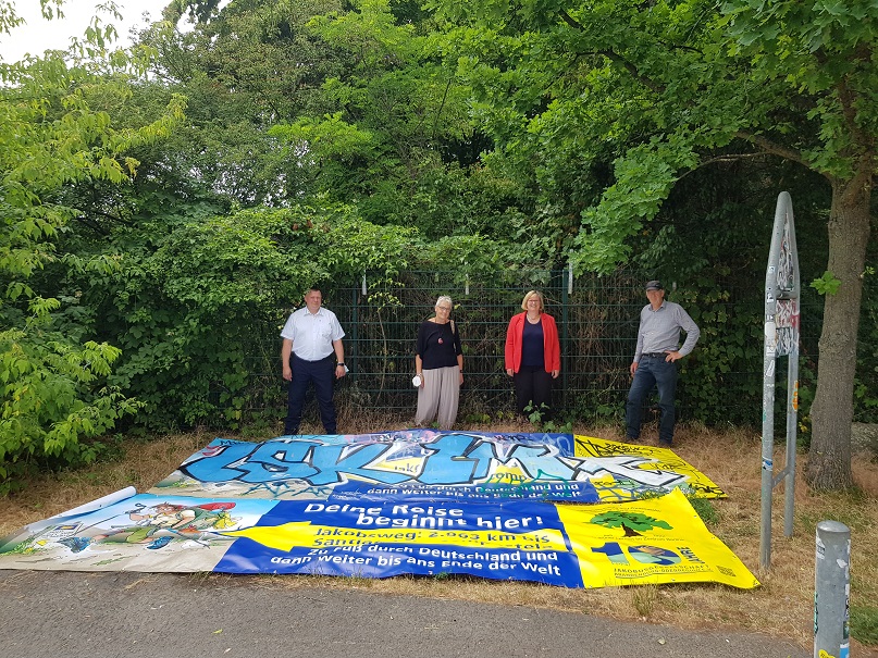 Pünktlich zu Beginn der Sommerferien wurde unser Jakobsweg-Banner an der Gartenarbeitsschule Tempelhof-Schöneberg ausgetauscht. Das bisherige Banner war leider Vandalismus zum Opfer gefallen. Mit Pilger-Karikatur wünschen wir allen Pilgerinnen und Pilgern einen guten Weg.
