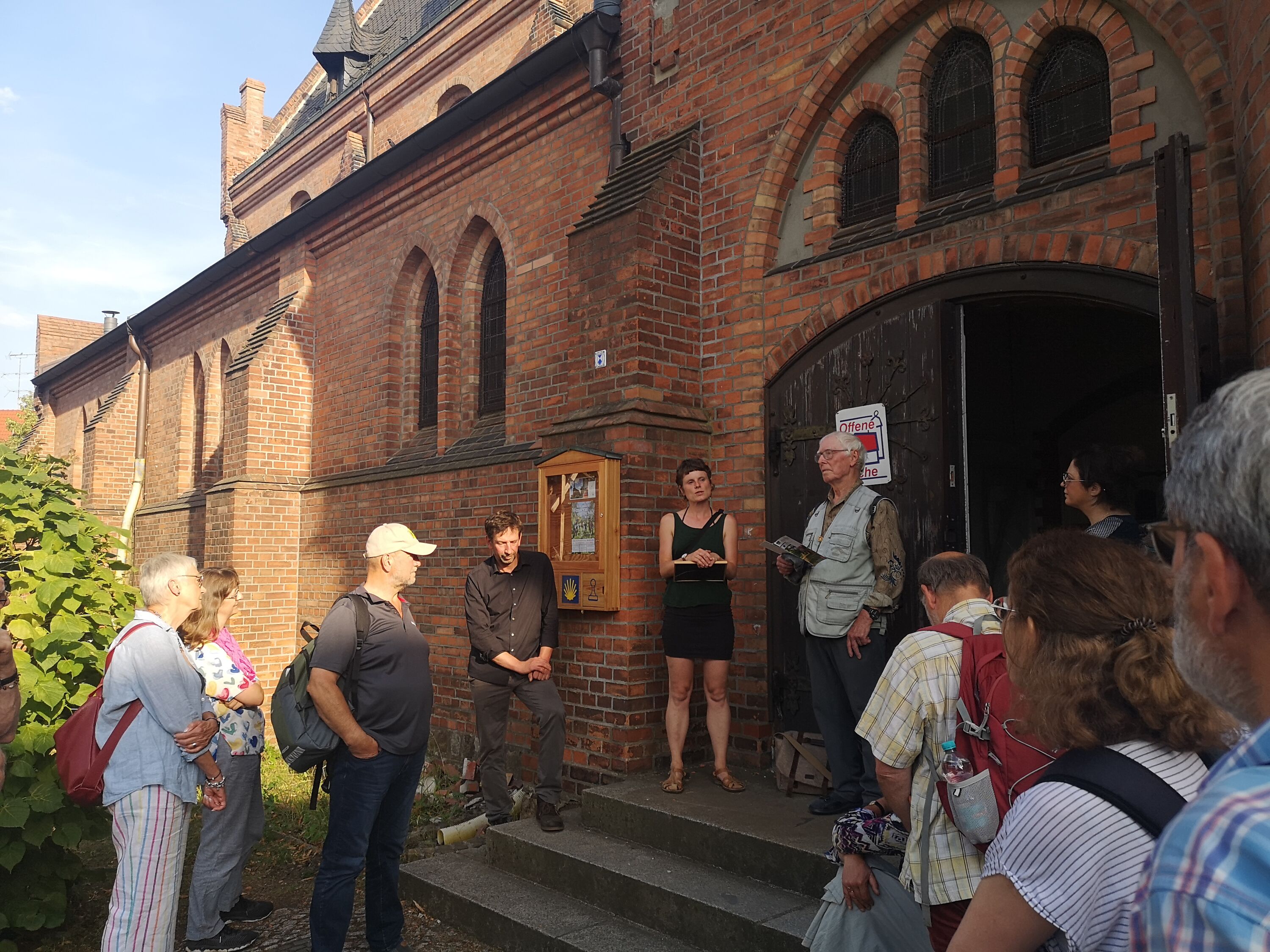 Am 14.07.2023 fand erstmals der monatliche Pilgertreff der Jakobusgesellschaft in Eberswalde statt. Treffpunkt war zunächst die Johanniskirche, wo wir eine Führung um und in der Kirche bekamen und einen Blick in das Pilgerzimmer werfen konnten.